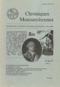- Un trait d'histoire locale qui s'inscrit dans celle de la France (le Moulin à Vent) J. Héritier Considérant la certitude de la mort... (testament de Me Jean Civier serrurier, 1696) document Le Maréchal Noël Jourda de Vaux (1705-1788) P. Teyssier Monistrol-sur-Loire, 11 mars 1964 (article de presse, repro. détachable) document Lafayette, nous voilà !